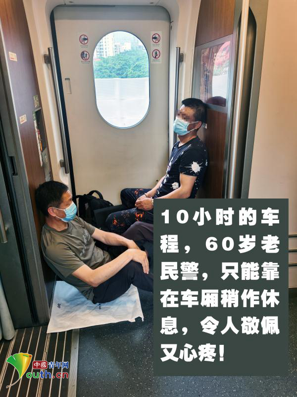 中国青年网北京5月19日电 (通讯员 胡朵悦 高鹏 见习记者 纪佳琦)跨越1000多公里的距离,辗转10余个小时车程,背靠列车过道,席地而坐,双眼满是血丝却依旧炯炯有神……近日,一位年近60岁的老民警在列车过道看管嫌疑人的模样让人心疼又敬佩!