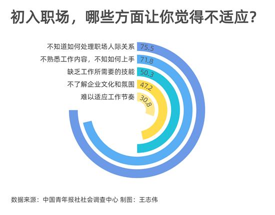 初入职场,哪些方面让你觉得不适应?75.5%受访职场青年表示是不知道如何处理职场人际关系。