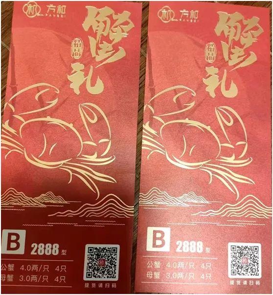 9月23日,北京商报记者在天猫搜索“方祁旗舰店”,同样未搜索到该店铺。但搜索“大闸蟹礼券”发现,有“横中蟹王”“苏湖港”“蟹太太”“醉卧阳澄”“蟹友汇”“蟹宝盒”等近百个品牌在售大闸蟹礼券,提货卡上型号从1888型到6288型不等,价格大多在数百元左右,其中,“蟹鲜生”旗舰店在售的6288型提货券,价格高达5888元。