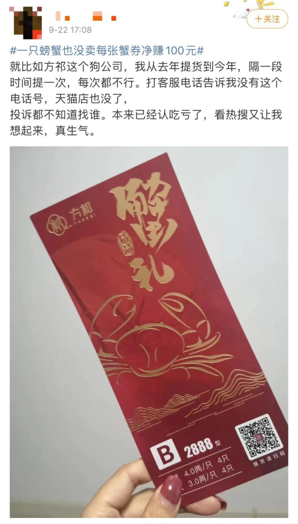 又到了商家瞄准销售螃蟹礼券的黄金时节。9月23日,有消费者向北京商报记者反映,购券之后三年时间,连大闸蟹的影子都没见到。