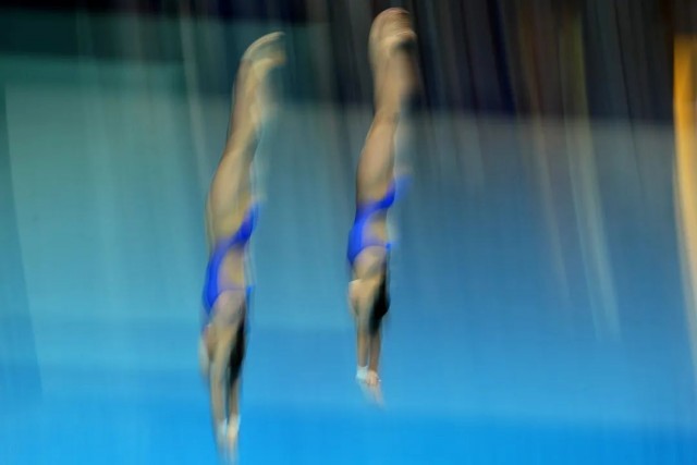 全红婵/陈芋汐在比赛中,动作同步性高度一致。视觉中国供图