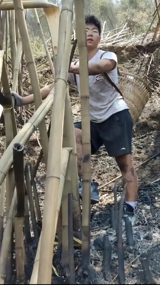 余秋朋需要在燃烧过后的斜坡上运送物资,他背着装满物资的背篓,头顶烈日往返10多次,“完全是‘立’起爬山。地上也烫,头顶上也烫。”