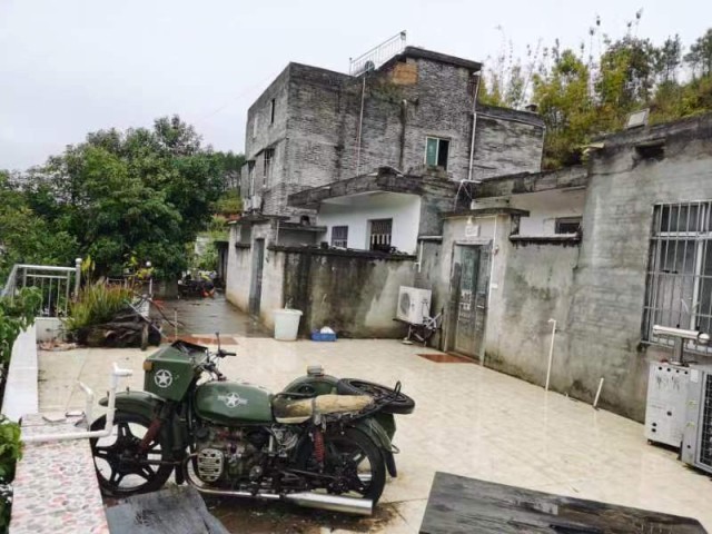 陈克政的家位于村庄上方的山腰间,得绕一条泥泞的山间公路才能到达。这是一排只有3栋的房屋,站在这里可以俯视下方村庄。最外面一栋是陈克政的家——一层两三百平方米的砖房,门口放着一辆废旧的三轮摩托车,以及一些破废机械;紧挨着的中间那栋平房,是陈克政弟弟陈松的家;最里面一栋三层青砖房,是陈克政父母的老屋。