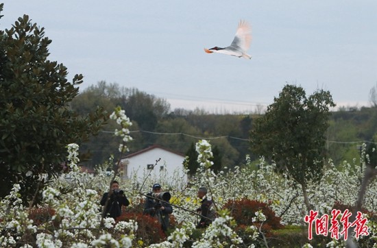 3月19日,陕西汉中洋县草坝村,一只朱鹮从架着“长枪短炮”的摄影爱好者头顶飞过。村里的一家民宿因朱鹮常常“造访”而在鸟类摄影圈知名,吸引了来自全国各地的爱好者。上世纪中期,朱鹮曾一度濒临灭绝。1981年5月,在洋县被发现的7只野生朱鹮,成为当时全球唯一的野生种群。自此,当地开始了对这一极度濒危物种的漫长保护历程。如今在“朱鹮之乡”的天空上时常能看到朱鹮的身影。