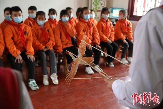 3月17日,陕西汉中洋县青年路小学,一场由本校学生表演的皮影戏刚刚结束,讲述了孩子们救助受伤朱鹮的故事。这所学校开发了许多以朱鹮为主题的社团课程,向学生传递人与自然生命共同体的理念。