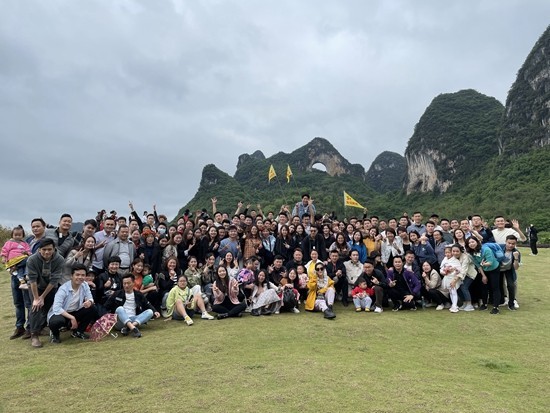 T168团队外出游玩,喊着口号“T168,向世界出发”。受访者供图