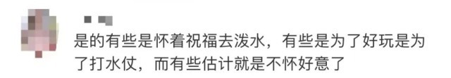 此前景洪市文旅局已发过文明泼水的倡议,并加大了宣传力度。但是,各景区人流量较大,可能存在个别情况,现场有警方和工作人员、志愿者在维护秩序。游客如果遇到类似情况,可以向警方和现场工作人员进行反映。
