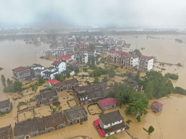 村庄突然就看不见了。5月6日下午,一位乘客坐在一列横穿江西的火车上,当火车行驶到丰城一段时,整块大地成了一片黄色汪洋。本该是村庄的地方,只能看见水面上零星的屋顶和树头。看到窗外的景象,那位乘客以为自己晃了眼。