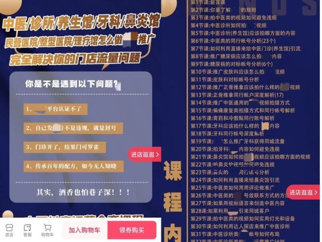对此,有的MCN机构还整理了“实操课程”。例如,某机构将医疗项目分门别类,并对不同平台的运营特点进行分析,表示有无医护执业资质的个人或机构都可参照学习,51节课定价179元。主播说,购买后还可以加入辅导群,有“专业老师”指点。