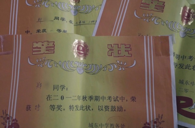 张丽后来回想,去市里读四年级时,儿子才9岁,慢慢变得不太喜欢说话。但因他成绩突飞猛进,墙壁上慢慢贴满奖状,夫妻俩很高兴,忽略了儿子的其他变化。
