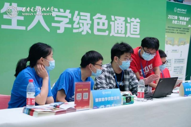 学校资助宣传大使为2022级新生办理相关业务。西安电子科技大学供图