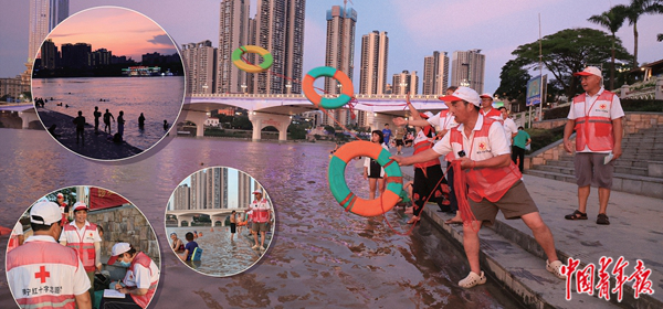 从最初发自内心的个人情感,到逐渐形成了对志愿服务的理性认识,郭慧仁觉得自己改变了很多。他要求每名队员必须掌握游泳自救的技能,并在南宁市红十字会的指导下为队员们购买了集体意外保险。“我们作为合格的志愿者,要尽量避免同他人发生摩擦或争吵。我们进行溺水宣传是以宣传为主,如果市民听取我们的宣传和劝阻,不在没有安全保障的情况下下水游泳,也是我们救了他。”