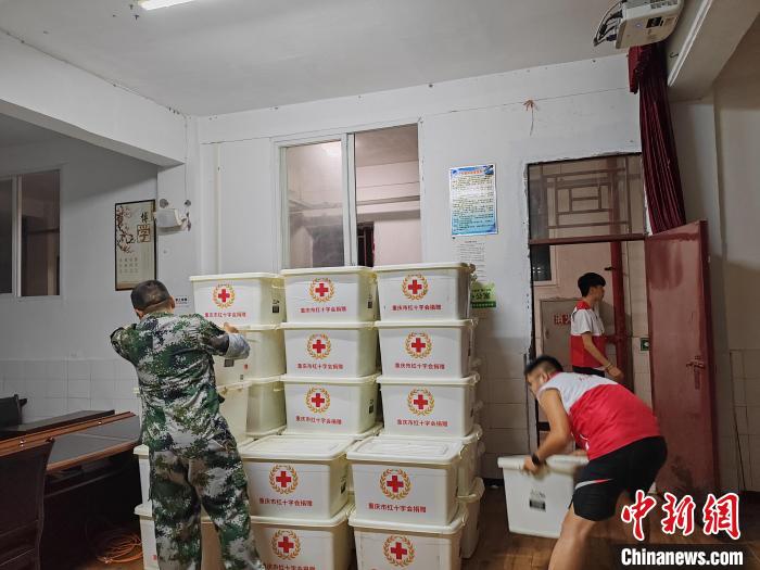 图为重庆的红十字志愿者准备物资发放工作。 重庆市红十字会供图