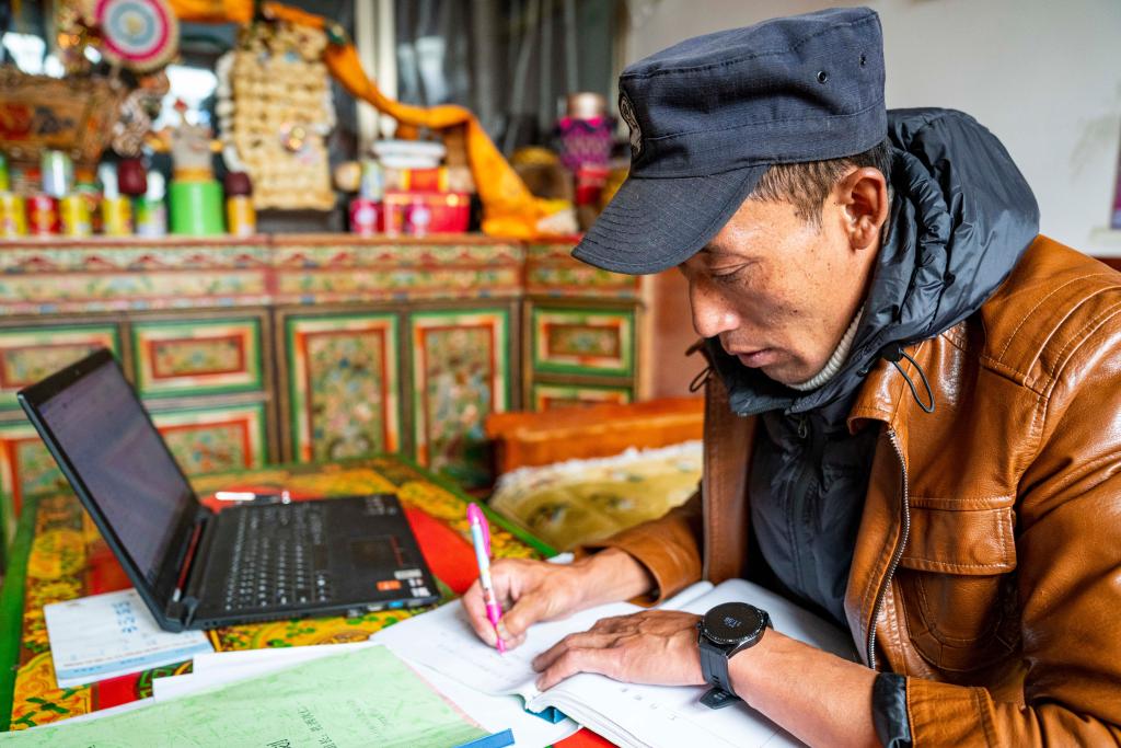 扎西次仁在填写工作日志(6月30日摄)。新华社记者 孙非 摄