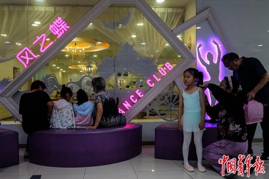 傍晚5点多,孙璐陪女儿上完舞蹈课出来,偌大的商场依然显得空荡,只有女儿的培训班橱窗前坐满了孩子们的爸爸、妈妈或爷爷、奶奶。淡紫色的灯光下,隔着白色纱帘,孩子们在老师的带领下继续起舞。