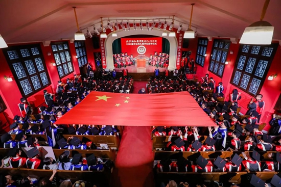 在北京协和医学院的毕业典礼现场,巨大的五星红旗从毕业生们的头顶缓缓掠过,同学们带着对祖国的热爱与崇敬,高举双手、轻抚国旗,共同完成协和毕业典礼的经典环节——抚旗仪式。