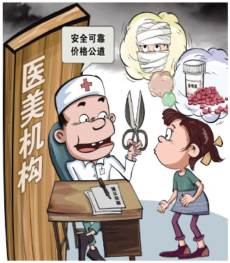 “在正规整形医院,如果患者不满18岁,需要监护人同意。”有医生告诉记者,限于“监护人同意”原则,一些瞒着父母整形的未成年人可能会选择非正规机构,失败后不得不回来找医生“翻修”(指对在其他机构做坏手术后予以补救)。