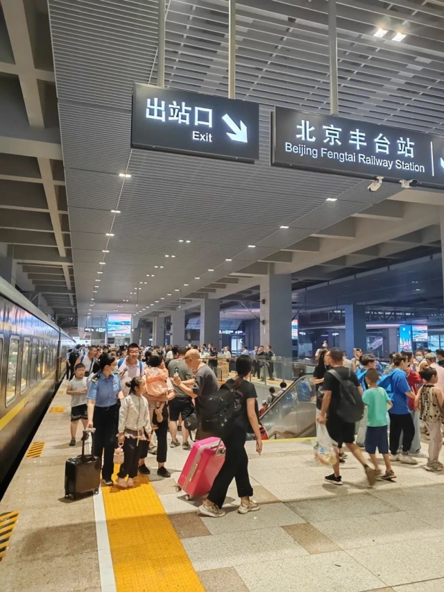8月2日8时32分,首批抵达丰台站的是K396次列车旅客。铁路部门为到站旅客开辟专用绿色通道,组织专人接车,通过地铁、出租车等方式安排旅客疏散。