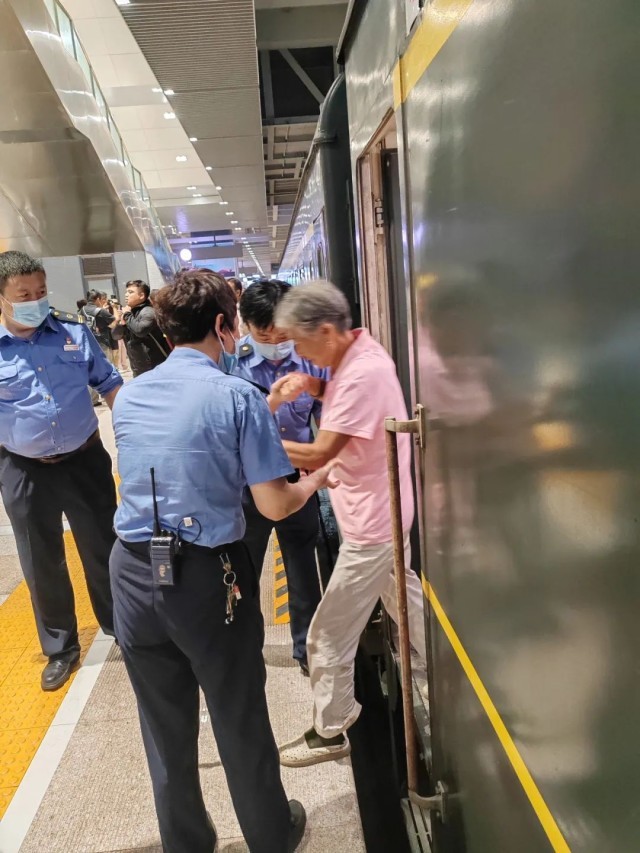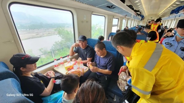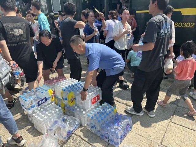 在转运K1178次列车旅客过程中,铁路部门增派32名值乘人员,为旅客备足食物和水,全力做好服务保障工作。