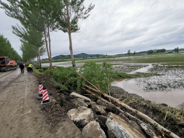 通往五常沙河子镇的一处县道出现部分垮塌。