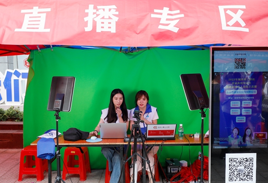 7月28日,江西省吉安市吉州区白塘街道零工驿站,工作人员进行线上招聘。视觉中国供图