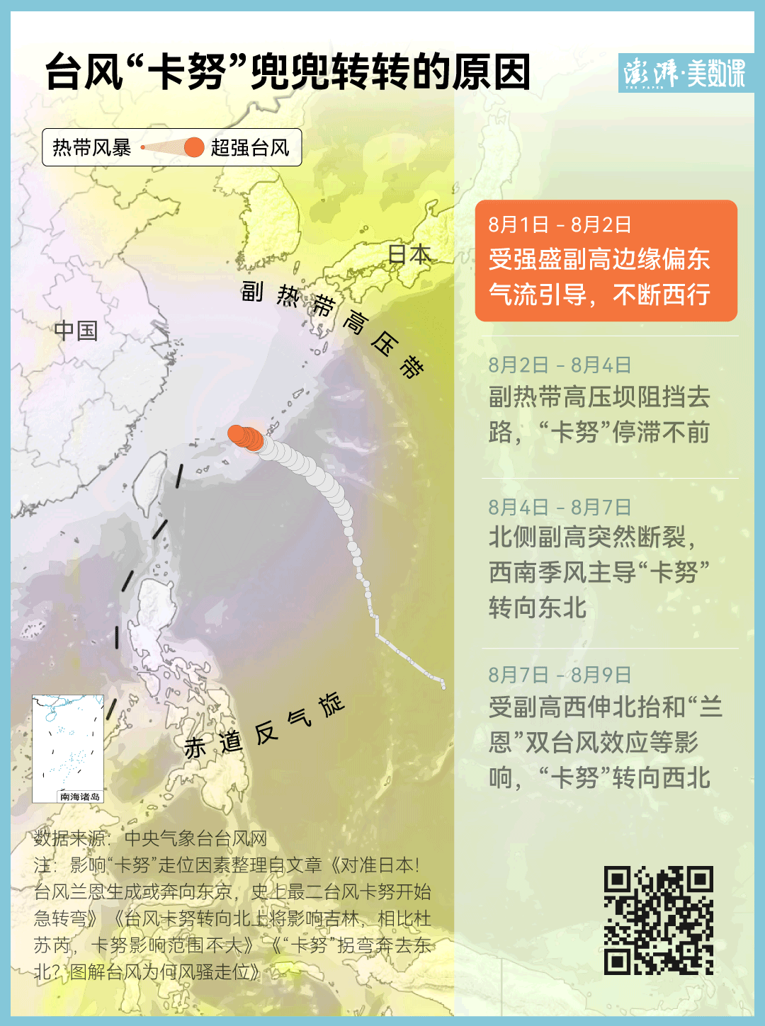台风“卡努”走出了一个之字形,拐过锐角弯、直角弯。