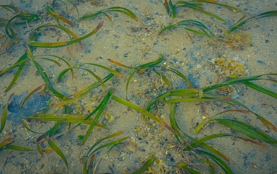 4月6日,黎安潟湖内长势良好的海草。海草作为地球上唯一一种能够完全生活在海水中的被子植物,具有重要的生态功能,能够捕获和储存大量的碳并将其永久埋藏在海洋沉积物里,因而成为地球上最密集的碳汇之一。