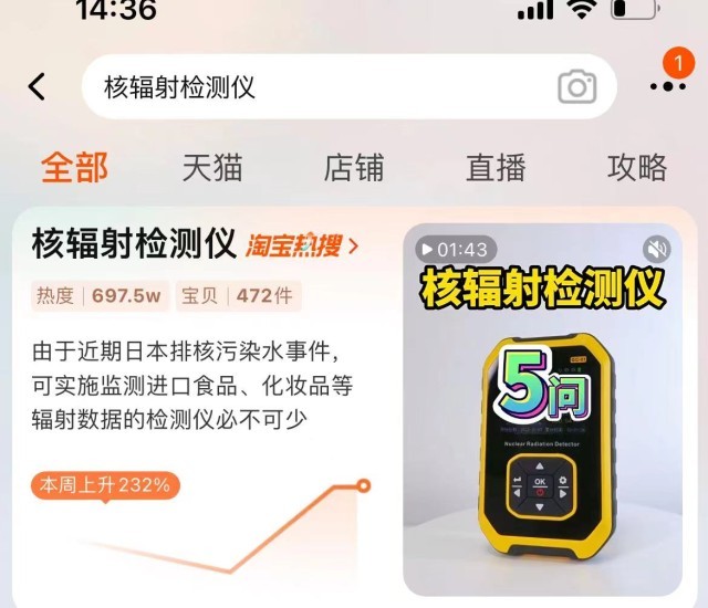 一位核辐射检测仪生产厂家工作人员称,“客服都回不过来了。”她表示,这两天销量猛增,而产能无法一下子提升上来,不能立刻增产。