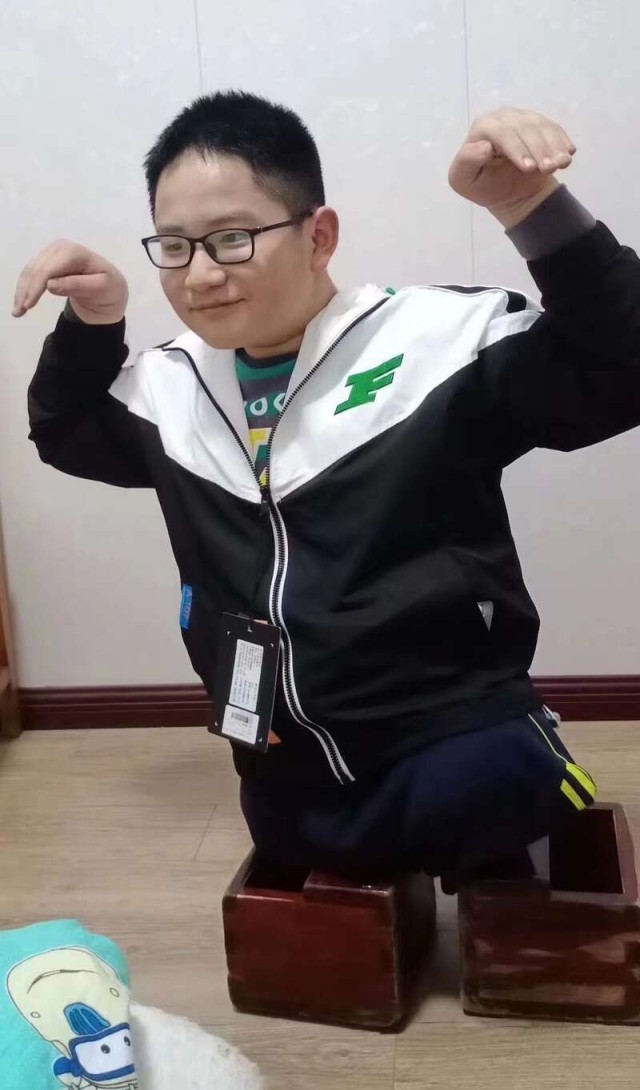考虑到假肢稳定性有限、在教室穿脱不便,小学毕业那个暑假,方宇翔决定锻炼肢体行动能力,将来改用小板凳行走。他每天做两组俯卧撑、半小时举重训练。双手磨起了茧子,但胳膊渐渐有力了,双手也更加灵活了。