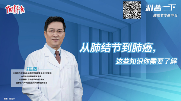 近年来,大家对肺部健康格外关注,尤其当首次胸部CT检查出肺结节,更加焦虑紧张。到底什么是肺结节?得了肺结节应该怎么做?平时我们应该怎样保护好肺部健康?又该怎样科学预防肺癌?近日,在中国青年报《科普一下·肺结节专题》直播中,中青报·中青网记者专访了中国医药教育协会肺癌医学教育委员会主任委员、中国胸外科肺癌联盟主席、首都医科大学肺癌诊疗中心主任、首都医科大学宣武医院胸外科首席专家支修益教授。