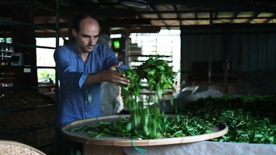 威廉正在准备晾晒鲜叶。受访者供图
