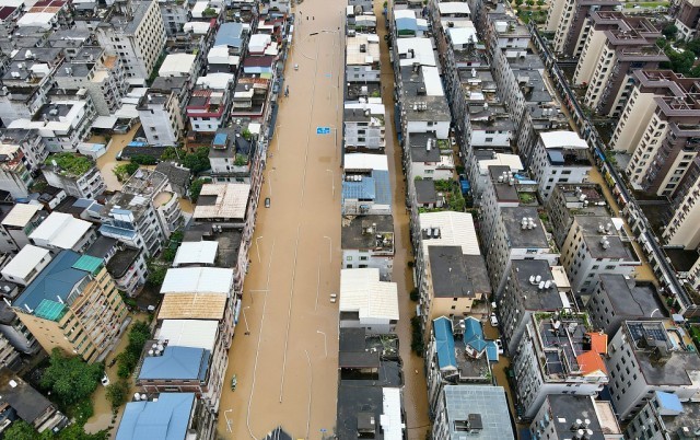 2023年9月5日,受台风“海葵”带来的强降雨影响,福州市闽侯县南通镇多处村庄被淹。