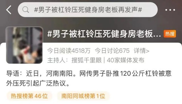 “武汉25岁男子卧推遭杠铃压喉致死”