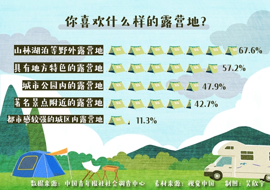 与露营结缘 64.3%受访青年有过露营经历