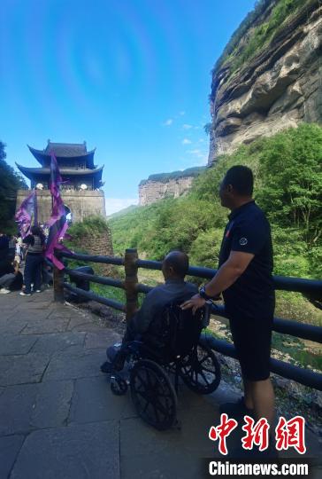 图为成都市民荣誉推着父亲游剑门关景区。苗志勇 摄