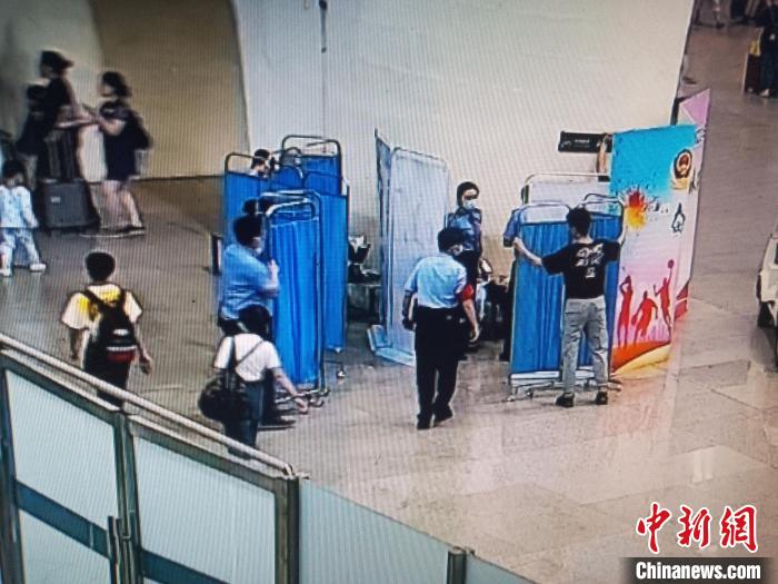 工作人员为孕妇搭起围蔽屏风。广州铁路公安处 供图