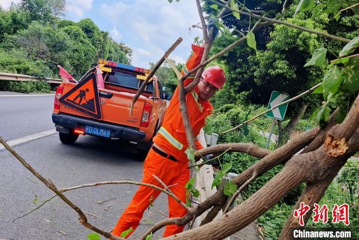 图为厦门高速养护人员提前对沿线部分匝道易倒伏树木进行修剪。福建省交通运输厅供图