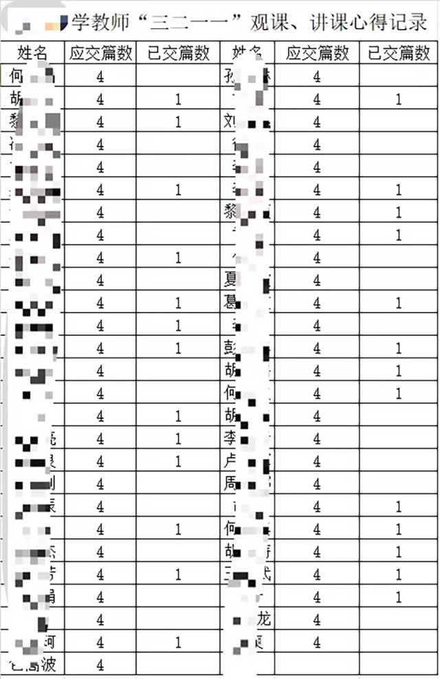 作为班主任,她承担管理班级的责任,学校为了“看见”管理内容,会安排教师们填写各种各样的表格,包括每日缺勤记录表,每日、每周、每月、每学期的安全记录表,班主任工作手册,行为规范课堂记录表,家访表,家长会座谈表等。表格一多,何雪夕免不了“造假”。