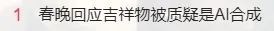 7日,“春晚回应吉祥物被质疑是AI合成”冲上热搜第一,引发讨论。
