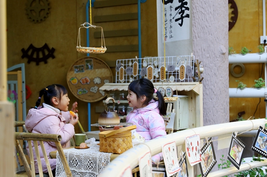 11月24日,在上海市实验幼儿园,小朋友玩“过家家”游戏时模拟围炉煮茶。新华社供图