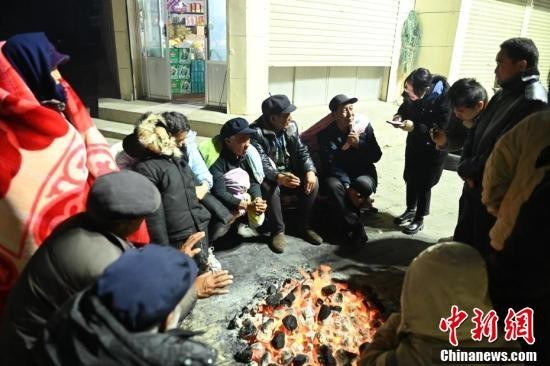 记者凌晨抵达震中附近的吹麻滩镇街道看到,仍有居民在路边生火取暖,他们有的披着被子,有的穿着厚棉袄。图为12月19日,记者在积石山县城了解居民受灾情况。