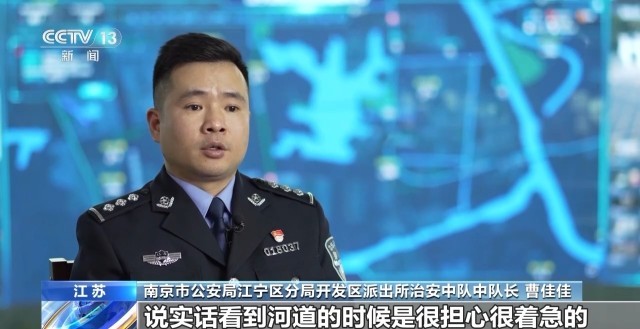 南京市公安局江宁区分局开发区派出所治安中队中队长 曹佳佳:甚至看到了40分钟了,都没有看到人影。也安排了警力到现场实地进行勘查,发现终点站点的后方是一条河道,说实话看到河道的时候是很担心很着急的,因为这个时候距离老人走失已经有将近30个小时了,我们在想那天晚上,到了这个站点以后老人因为体力不支、路滑或者晚上天色不好,会不会掉到河道里面。