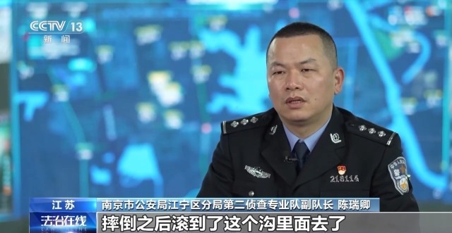南京市公安局江宁区分局第二侦查专业队副队长 陈瑞卿:当我们找到老人的时候,他买的一些物品还有一只鞋丢在田埂的上面,自己摔倒之后滚到沟里面去了。
