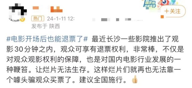 话题#电影开场后也能退票了#