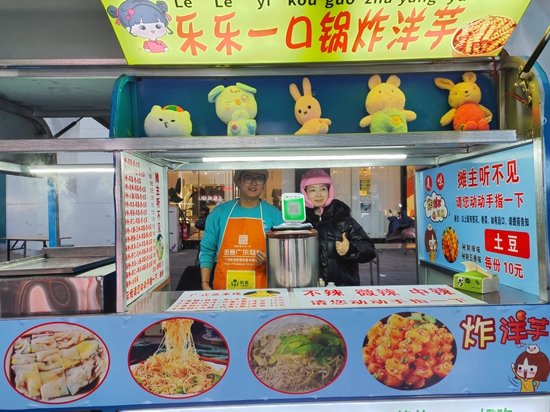 来自安徽中医药高等专科学校的何姓同学已是第四次来这个摊位买炸土豆了。“他们俩热爱生活、永不放弃的态度很让人佩服。”何同学表示,学校离夜市很近,今后还会常来。