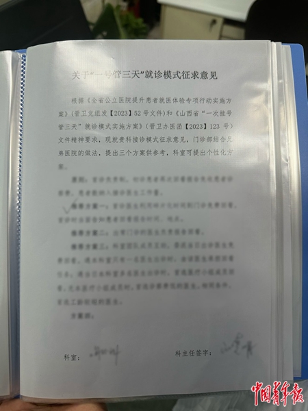 山西省人民医院门诊部收集各科室执行意见,并汇集成册。中青报·中青网见习记者 王雪儿/摄