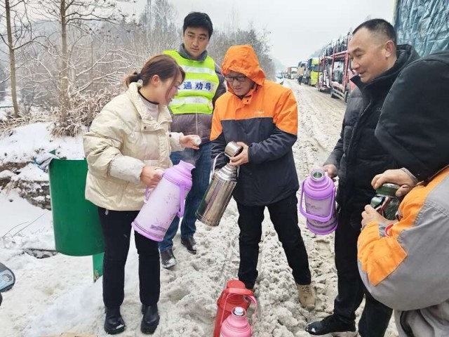 获悉原因后,彭建中表示也要尽一份力。他迅速在家烧水,装满了3个暖水瓶,上山支援母亲。付小琼看他脚步快,就让他留在高速路旁,负责接应物资,并给司乘分发、递送。