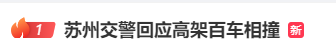 今早,“苏州高架”、“苏州一高架道路结冰多车相撞”“苏州交警回应高教百车相撞”多个话题词冲上热搜。