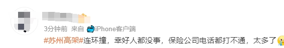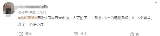 不少苏州网友爆料:10km五个车祸、导航一直在改变路线、保险公司电话都打不通了……