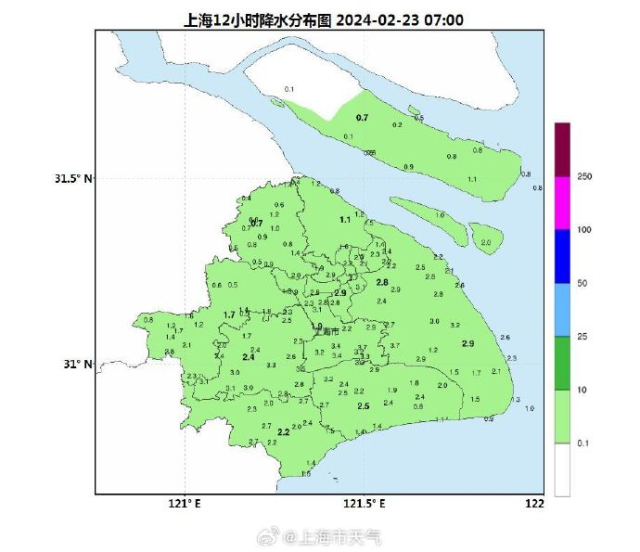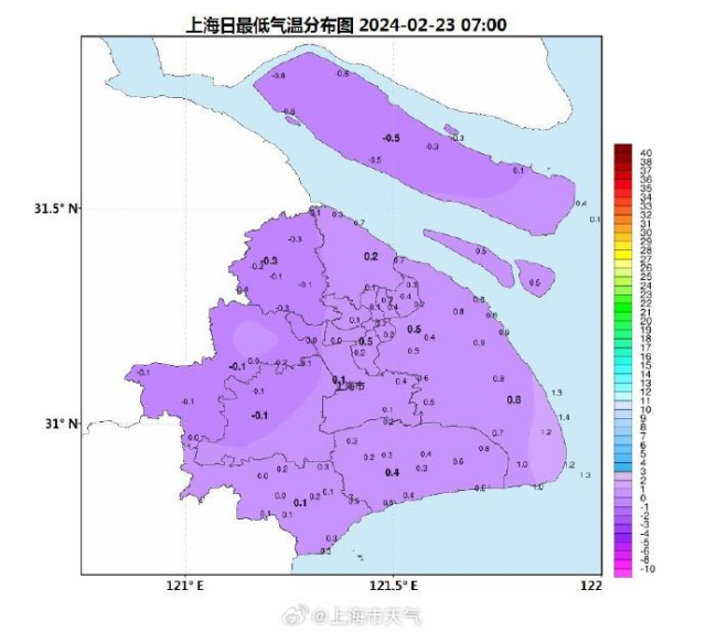 据上海中心气象台,受冷空气影响,昨天夜间本市阴有时有小雨,崇明地区出现雨夹雪,统计昨天20时至今天07时本市雨量普遍在4毫米以下。最低温度多在1℃以下,崇明温度最低为零下0.5℃。